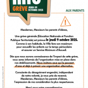 Une grève générale (Éducation Nationale et Fonction Publique Territoriale) est prévue le jeudi 9 octobre 2025. Comme à son habitude, la Ville fera son maximum pour accueillir les enfants sur le temps périscolaire et assurer un Service Minimum d’Accueil. Dès que nous aurons connaissance de l’impact de cette grève, vous serez informés de l’organisation mise […]