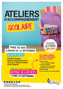 La Ville propose une aide et un accompagne scolaire et professionnel pour les élèves Villepintois scolarisés dès la 6e. Les ateliers d’accompagnement à la scolarité sont organisés à destination des collégiens Villepintois. Il s’agit de cours généraux encadrés par des enseignants qualifiés.