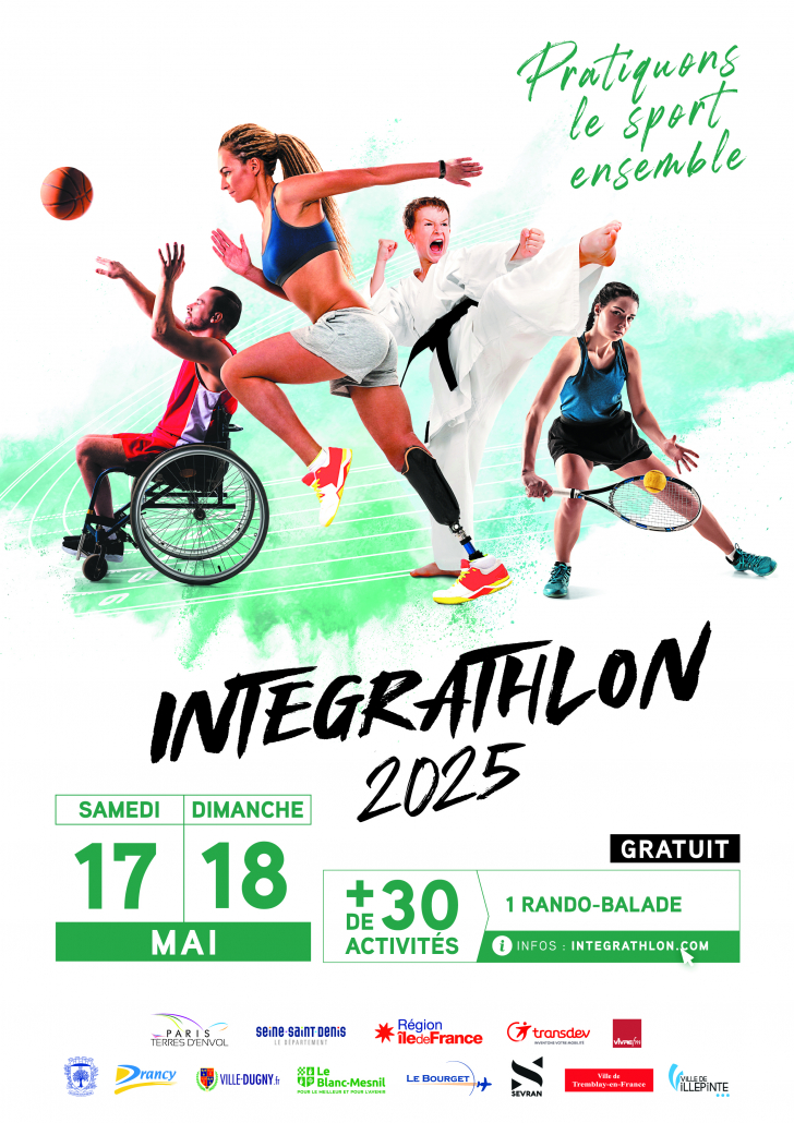 Événement régional incontournable, l’Intégrathlon 2025, soutenu par la Région Île-de-France, se déroulera du 12 au 18 mai 2025 sur l’ensemble du territoire de Paris Terres d’Envol, dont fait partie la Ville de Villepinte. Cet événement rassemble personnes valides et en situation de handicap, sportives ou non, autour de la pratique partagée du sport.