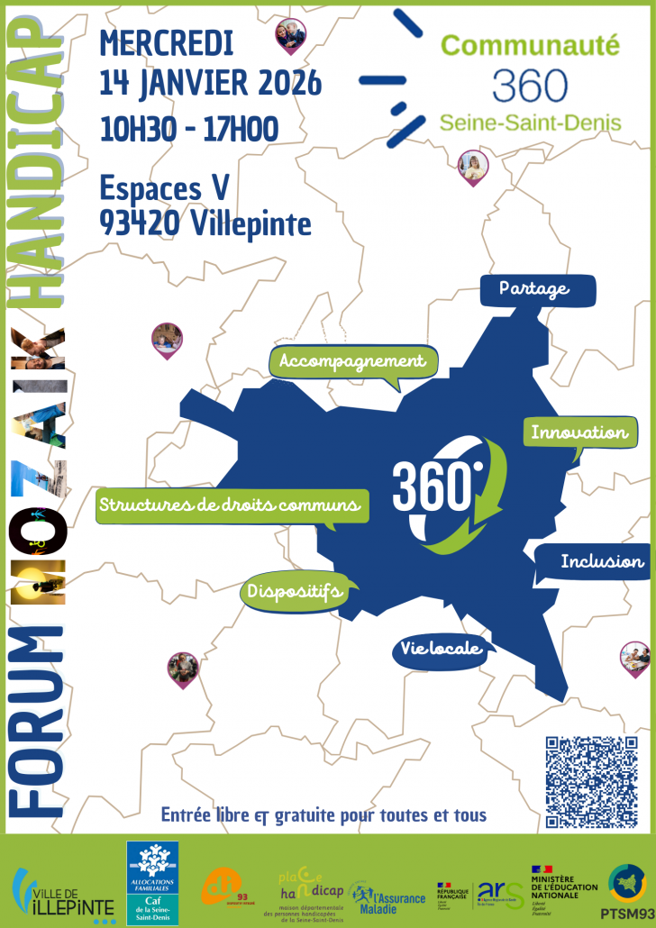 Le premier Forum départemental Mozaïk Handicap se tiendra le mercredi 14 janvier 2026 de 10h30 à 17h aux Espaces V Roger-Lefort. Organisé par la Communauté 360, dispositif porté par l’association Vivre et devenir, en partenariat avec l’ARS Île-de-France, la MDPH 93 et le Conseil départemental, cet événement a pour ambition de mettre en lumière les initiatives locales et de renforcer les passerelles entre le secteur du handicap et la société dans son ensemble.