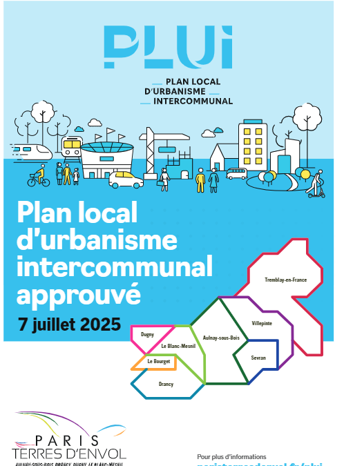 Le Plan Local d’Urbanisme Intercommunal (PLUi) a été approuvé en Conseil Territorial de l’EPT Paris Terres d’Envol le lundi 7 juillet 2025. Son application entrera en vigueur dans quelques semaines, une fois qu’il aura été téléversé sur le Geoportail de l’Urbanisme.